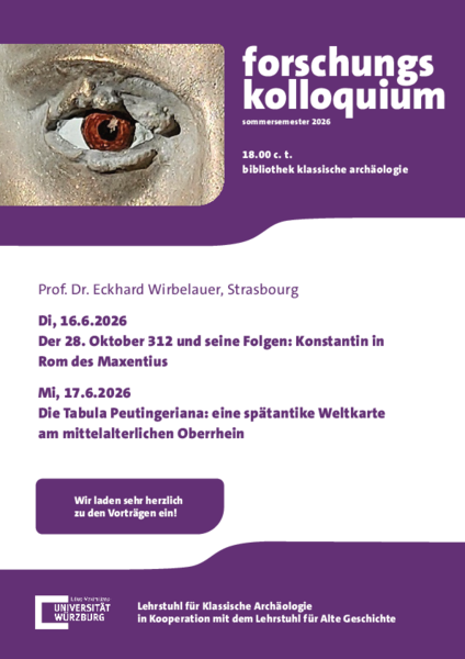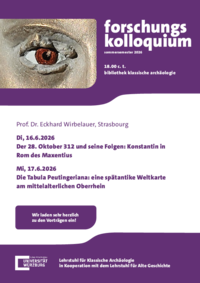 Der Lehrstuhl für Alte Geschichte lädt herzlich zum Forschungskolloquium in die Bibliothek Klassische Archäologie am 16.06. und 17.06.2026 um 18.00 c. t. ein!