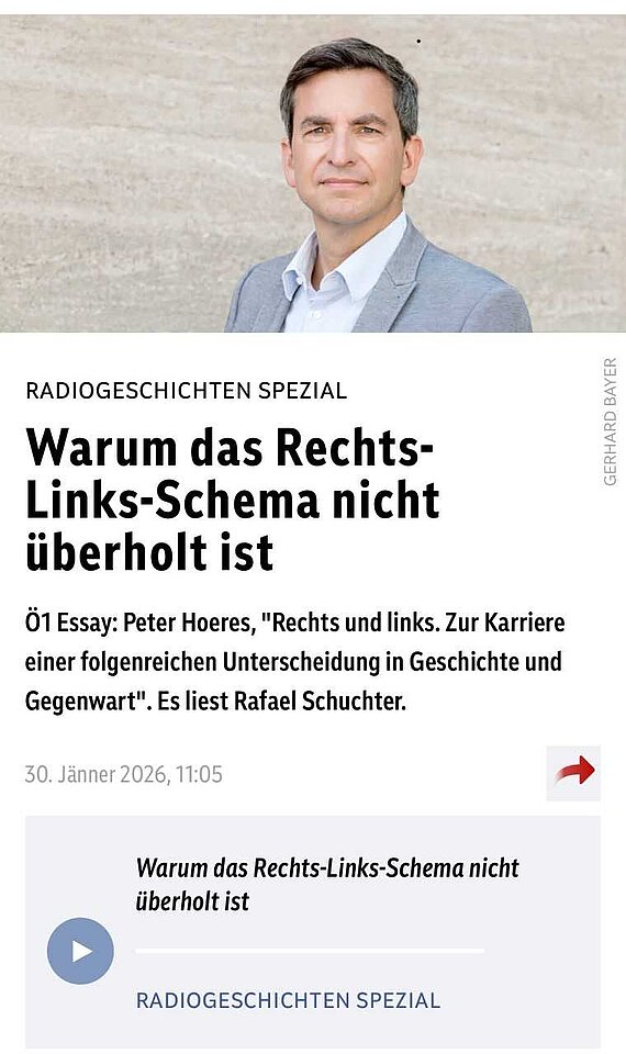 Lesung im ORF aus dem aktuellen Buch von Prof. Hoeres über Rechts und links. Zur Karriere einer folgenreichen Unterscheidung in Geschichte und Gegenwart.